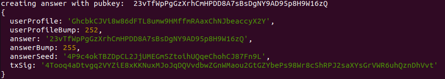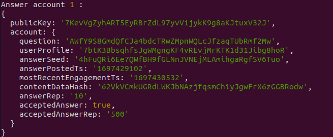 Providing an answer or leaving a comment goes much the same way as asking a question does; by first updating the config file, either (../config\_devnet/answerConfig-devnet.ts) or (../config\_devnet/commentConfig-devnet.ts). Here is an example for an answer config file for a user intending to answer the question posted earlier: