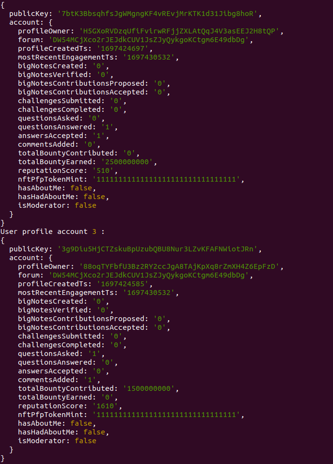 Fetching the forum account, we see that there is now 1 forum profile account present: