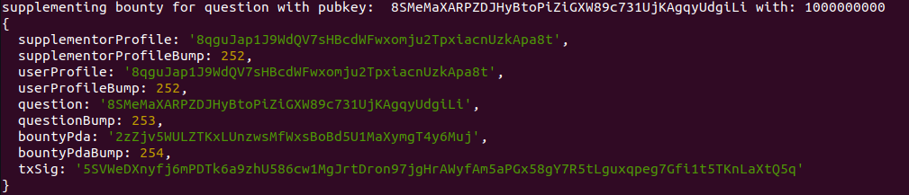 REMARK: An improtant comment to make in passing is that this bounty is held onchain in a PDA account and can only be released to the owner of the user profile who provided the 'accepted answer'.